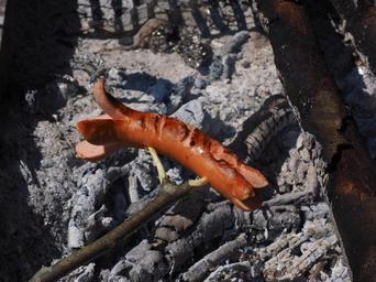 Keywords: bratwurst grill sausage red sausage grill sizzle fry heat eat meat barbecue grilling fire embers delicious