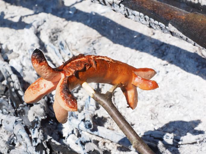 Keywords: bratwurst grill sausage red sausage grill sizzle fry heat eat meat barbecue grilling fire embers delicious