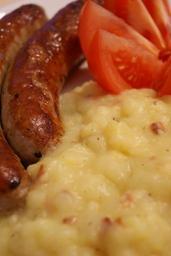 Keywords: bratwurst potatoes salad tomatoes bacon eat