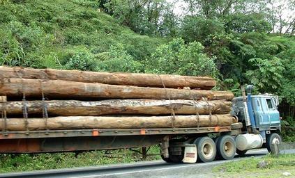 Keywords: BraulioCarrilloLogsApr03.jpg Tropical hardwoods travelling through Braulio Carrillo National Park Costa Rica Own 2003-04 Tim Ross Braulio Carrillo National Park Timber semi-trailer trucks