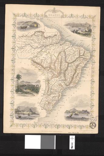 Keywords: Brazil WDL48.png Artwork ru Рэпкин Дж fr Rapkin John 1815-1876 en Rapkin John 1815-1876 zh 瑞普金 J pt Rapkin John 1815-1876 ar رابكين ج es Rapkin John 1815-1876 ru Б азилия fr Brésil en Brazil zh 巴西 pt Brasil ar البرازيل ru Данная ка та Б азилии п оизводства компании Таллис отличается ажу ной амкой и художественно выполненными ка тинами изоб аженными на ка те Английская фи ма Джон Таллис и К занималась выпуском ка т в пе иод с 1835 по 1869 гг Ка та была на исована и выг ави ована ка тог афом Джоном Рэпкиным Ка ты фи мы Таллис были известны своей точностью и использованием многочисленных геог афических названий и деталей Их отличительной че той было также етуши ование отдельных частей ка ты для обозначения топог афических ха акте истик Цветные иллюст ации асположенные по углам ка ты на кото ых изоб ажены Лодки на Рио- ег о в ве хнем левом углу Святая Ката ина в ве хнем п авом углу онте-Видео и ыс Святого Антония Баия в нижнем левом углу и Рио-де-Жаней о в нижнем п авом углу демонтст и уют высокое качество ка ты и масте ство ее изготовителей fr Cette carte du Brésil est une carte de Tallis identifiable par les arabesques des bordures et les scènes délicatement dessinées inscrites sur la carte John Tallis et Cie était une entreprise de cartographie britannique entre environ 1835 et 1860 Cette carte fut dessinée et gravée par le cartographe John Rapkin Les cartes de Tallis étaient réputées pour la précision de leurs dessins et les nombreux noms de lieux et détails géographiques ainsi que pour l'usage de zones ombrées pour indiquer des caractéristiques topographiques Le travail de grande qualité de la carte peut être observé dans les illustrations en couleur aux quatre coins représentant « Des bateaux sur le Rio Negro » en haut à gauche « Sainte Catherine » en haut à droite « Monte Video » et « Le cap Saint Antoine Bahia » en bas à gauche et « Rio de Janeiro » en bas à droite en This map of Brazil is a Tallis map identifiable by the scrolling on the borders and the finely-drawn scenes inscribed on the map John Tallis and Co was a British mapmaking firm that operated from roughly 1835 to 1860 The map was drawn and engraved by cartographer John Rapkin Tallis maps were known for their accurate designs and numerous place names and geographical details as well as for the use of shaded areas to indicate topographical features The fine craftsmanship of the map can be seen in the color illustrations in the four corners showing Boats on the Rio Negro upper left St Catharina upper right Monte Video and Cape St Antonio Bahia lower left and Rio de Janeiro lower right zh 这幅巴西 图是 幅塔利斯 图,这 点可以从边界上的螺线和 图上精心绘制的 景 给以识别 约翰·塔利斯公司是 家经营于约 1835 年至 1860 年 间的英国 图公司 该 图是由制图师约翰·拉普金绘制和制版的 塔利斯 图以其准确的设计和丰富 名以及 理细节 闻名, 且还是用阴影 显示 形特征 可以从四角上的彩色图案中 出该幅 图优良的手工工艺, 图的四角分别注 里奥内格罗的船只 (左上角) 凯萨琳 (右上角) 蒙得维的亚 和 安 尼奥角 (左下角) 和 里约热内卢 (右下角) pt Este mapa do Brasil é um mapa Tallis identificável pelo estilo pergaminho nas bordas e pelas cenas ricamente ilustradas nele inscritas John Tallis e Cia era uma empresa britânica de cartografia que funcionou entre cerca de 1835 a 1860 O mapa foi elaborado e gravado pelo cartógrafo John Rapkin Os mapas Tallis eram conhecidos por seus desenhos precisos e numerosos topônimos e detalhes geográficos bem como pela utilização de áreas sombreadas para indicar características topográficas A beleza artesanal do mapa pode ser vista nas ilustrações coloridas dos quatro cantos que mostram Barcos no Rio Negro canto superior esquerdo Santa Catarina canto superior direito Montevidéu e Cabo de Santo Antonio Bahia abaixo à esquerda e Rio de Janeiro abaixo à direita ar هذه الخريطة من إنتاج تاليس، ومن الممكن تمييزها من اللفيفة على الحواشي والدقة في رسم المناظر المنقوشة على الخريطة كانت جون تاليس وشركاه شركة بريطانية لصنع الخرائط وقد عملت من حوالي 1835 إلى 1860 رسم هذه الخريطة ونقشها رسام الخرائط جون رابكن وكانت خرائط تاليس معروفة لدقة تصاميمها وكثرة أسماء الأماكن فيها وتفاصيلها الجغرافية، بالإضافة إلى استعمال الظلال للإشارة إلى الميزات الطوبوغرافية يمكن مشاهدة المهارة الرائعة في هذه الخريطة في الإيضاحات الملونة التي تظهر زوارق على ريو نيغرو أعلى اليسار ، و سانت كاتارينا أعلى اليمين ، و مونت فيديو و رأس سانت أنطونيو، باهيا أسفل اليسار ، و ريو دي جانيرو أسفل اليمين es Este mapa de Brasil es un Tallis identificable por los ornamentos de los bordes y las delicadas escenas inscritas en el mapa John Tallis and Co fue 