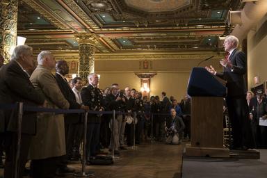 | Keywords: Breakfast before 2015 Veterans Day parade 151111-N-LV331-004.jpg en 151111-N-LV331-004 NEW YORK Nov 11 2015 Secretary of the Navy SECNAV Ray Mabus delivers remarks during a breakfast hosted by New York City Mayor Bill de Blasio before the 2015 Veterans Day parade in New York City Mabus and the crew of USS New York LPD 21 joined more than 400 local Sailors in marching down 5th avenue to represent the U S Navy as the featured service for this year's parade U S Navy photo by Mass Communication Specialist 2nd Class Armando Gonzales/Released Unit Navy Media Content Services DVIDS Tags Secretary of the Navy; Ray Mabus; power; travel; budget; presence; partnerships; spending; Navy; people; government; SECNAV; Marine Corps; NMCS; DVIDS Bulk Import 2015-11-11 Armando Gonzales https //www dvidshub net/image/2293192/breakfast-before-2015-veterans-day-parade 151111-N-LV331-004 2015-11-18 00 40 NEW YORK NY US PD-USGov-Military-Navy Ray Mabus Veterans Day 2015 USS New York LPD-21 Images from DoD uploaded by Fæ |