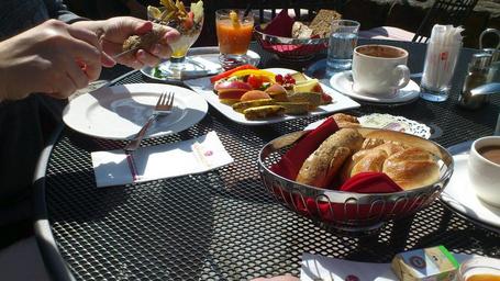 Keywords: breakfast bread jam coffee tableware cutlery eat baked goods food roll