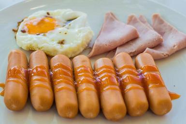 Keywords: breakfast food egg white bread background healthy wooden table meal morning fresh fried english view top rustic full delicious cuisine dish meat muesli bakery croissant