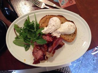 Keywords: breakfast gourmet delicious ham eggs bread salad