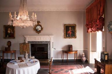 Keywords: breakfast room home table georgian chairs crystal chandelier painting kaminofen