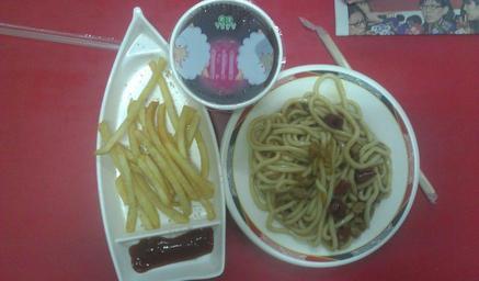 Keywords: Breakfast sold in taiwan.jpg en breakfast sold in taiwan left french fries right Kung Pao chicken noodles Mid black tea 2013-05-01 07 50 23 own K1234567890y 25 109766666667 121 5191 cc-zero Uploaded with UploadWizard French fries in Taiwan Black tea Kung Pao chicken Noodle dishes of Taiwan Breakfast in Taiwan