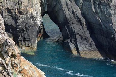 Keywords: breakthrough cliff cliffs sea water rock steep slope outlook bluff steilkueste atlantic west coast ireland mizen head county cork lake