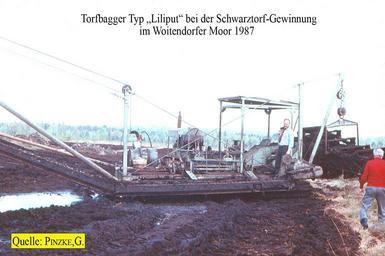 Keywords: Breesen16.jpg de Schwarztorf-Gewinnung im Woitendorfer Moor bei Gadebusch Mecklenburg-Vorpommern self-photographed Dr Günter Pinzke 1987 Cc-zero Woitendorfer Moor Peat cutting machines