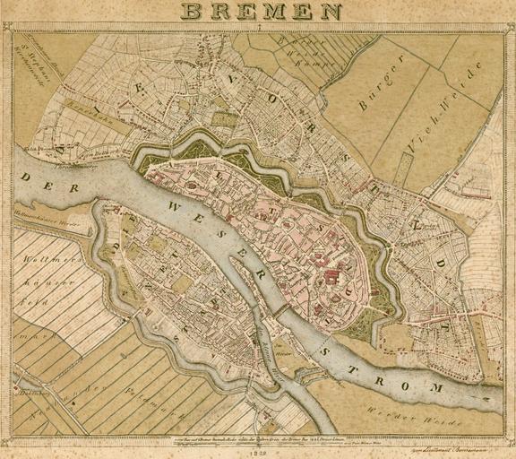 | Keywords: Bremen 1829 Bornemann.jpg Map of Bremen city and its suburbs from 1829 scanned by myself in Staatsarchiv Bremen 1829 scan 2015-01-28 upload 2015-02-01 Lieutenat Bornemann scan upload Ulamm <span class signature-talk ></span> Old maps of Bremen 1829 Bremen in the 1820s PD-old-100 |