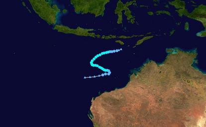 | Keywords: Brenda 1978 track.png Track map of Cyclone Brenda of the 1977 “78 Australian region cyclone season The points show the location of the storm at 6-hour intervals The color represents the storm's maximum sustained wind speeds as classified in the Saffir-Simpson Hurricane Scale see below and the shape of the data points represent the nature of the storm according to the legend below User Nilfanion/Tc/T The background image is from NASA Tracking data is from http //jtwccdn appspot com/NOOC/nmfc-ph/RSS/jtwc/best_tracks/wpindex html JTWC 2013-06-24 Supportstorm 1977-78 Australian region cyclone season track maps |