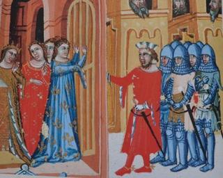 Keywords: Bretislav Jitka.jpg cs Břetislav se setkává s Jitkou http //www veda cz/dwn/5430/12877B_dalimil jpg Dalimilova kronika anonymous century 14 PD-Art Chronik Dalimil Bretislaus I of Bohemia in miniature Judith of Schweinfurt