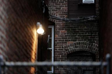 Keywords: bricks walls urban lamp night light house brickwall masonry alley building