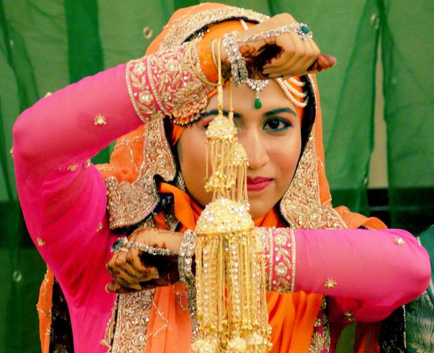Keywords: bride traditional indian jewelry wedding love dress marriage celebration female married woman young ceremony elegance girl portrait happy veil tradition decoration makeup culture smile