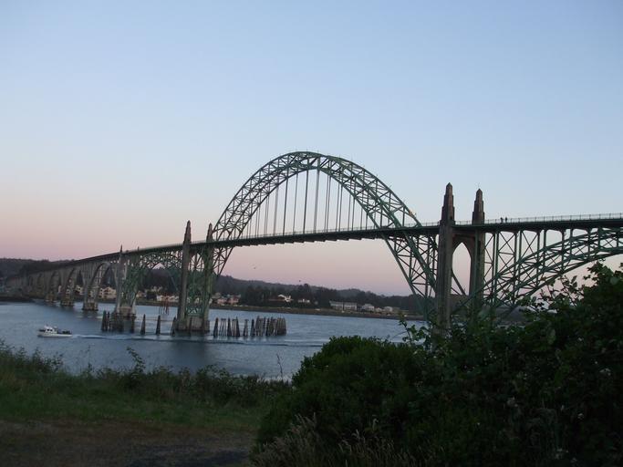 Keywords: bridge arch bay oregon steel-arch bridge harbor evening