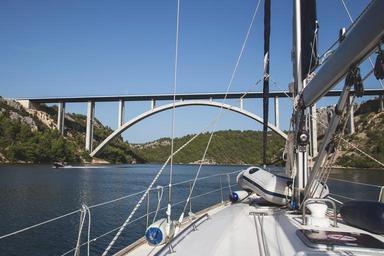 Keywords: bridge boat sailing sailboat croatia sea river krka