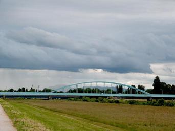 Keywords: bridge city sky clouds view