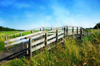 Keywords: bridge ditch landscape dutch landscape polder scenic grass blue sky