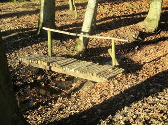 Keywords: bridge forest wooden bridge web transition bach hiking idyllic hike switzerland thurgau sommeri trees