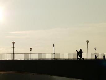 Keywords: bridge human profile silhouette web street lamp back light everyday life city road live