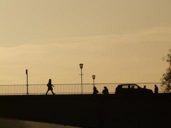 Keywords: bridge human profile silhouette web street lamp back light everyday life city road live