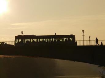 Keywords: bridge human profile silhouette web street lamp back light bus vehicle traffic