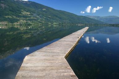 Keywords: bridge lake reflected in water landscape rest scenery haven summer grass water nature pond