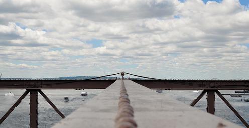 Keywords: bridge manhattan brooklyn new york architecture downtown view river water sky blue clouds town construction