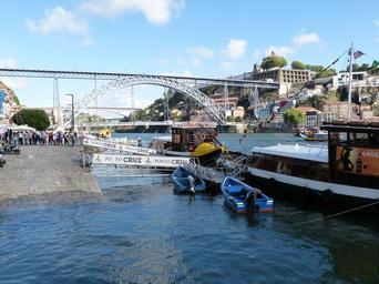 Keywords: bridge metal arch train cross porto travel portugal tourism douro ship boot river boats ships bank