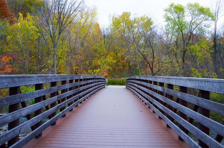 Keywords: bridge nature landscape park outdoor fall red leaves