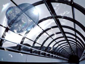 Keywords: bridge passage tunnel mystical mysterious architecture soap bubbles feather bird feather seeds tender filigree fly float glide airy transparent circle graphic fabric abstract line modern art soap rainbow
