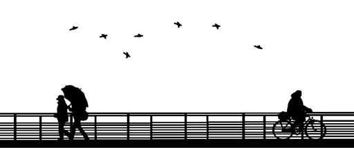 Keywords: bridge people the silhouette spacer umbrella bike birds figure graphics vector black svg the transparency of the no background