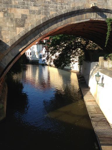 Keywords: bridge prague czech republic capital city old town river water mirroring downtown waters light