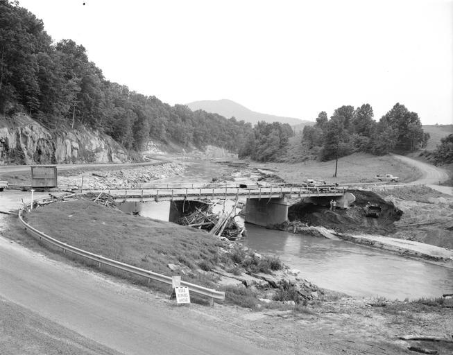 | Keywords: richmond va usa hurricane agnes hurricaneagnes virginia flood flooding natural disaster richmond va usa naturaldisasterrichmondvausa blackandwhite monochrome outdoor black and white Construction workers begin reparis to the bridge at the intersection of Rt. 617 and Rt. 623 in Nelson County. Debris, even trees, are stacked against the piers. Located two miles east of Woods Mill. No. 72-1366, Virginia Governor's Negative Collection, Library of Virginia. Construction workers begin reparis to the bridge at the intersection of Rt. 617 and Rt. 623 in Nelson County. Debris, even trees, are stacked against the piers. Located two miles east of Woods Mill. No. 72-1366, Virginia Governor's Negative Collection, Library of Virginia.  |