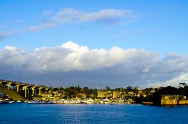 Keywords: bridge river gladesville bridge parramatta landscape clouds sky blue scenic boat gladesville sydney