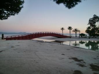 Keywords: bridge river mirroring palm trees sea reflection abendstimmung modern art