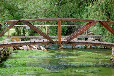 Keywords: bridge river water scenic green trees spring nature outside montana