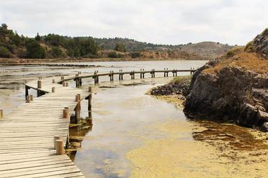 Keywords: bridge salins wooden bridge stilt sea peyriac france path atypical hiking passage sea water