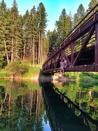Keywords: bridge summer boys river children fun reflection montana youth