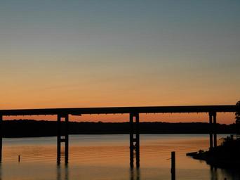 Keywords: bridge sunset sunrise orange skyline dusk dawn morning evening silhouette sky water river waterfront coastline transportation scenic