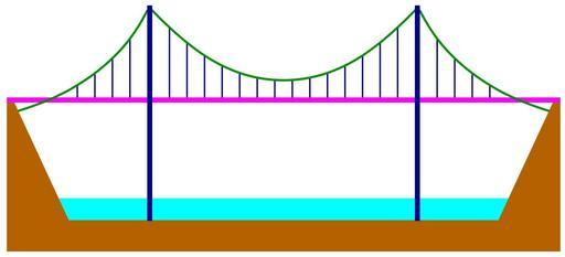| Keywords: Bridge-suspension-nonsimple.svg en A suspension bridge This drawing is used for comparing this kind of bridge with File Bridge-suspension-simple svg where the two lines in magenta and green cable and pathway are merged in one own Tizio 2009-03-25 Suspension bridge drawings |