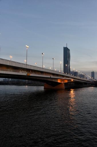 Keywords: bridge vienna austria architecture night lights danube reflections dawn break of dawn