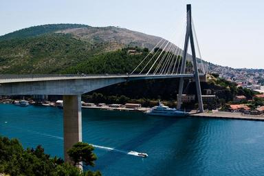 Keywords: bridge water croatia city mountain ships trees landscape summer summer landscape dalmatia
