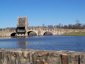 Keywords: bridge water park medieval stone sky blue