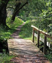 Keywords: bridge web boardwalk transition water nature away wood wooden bridge wooden boards