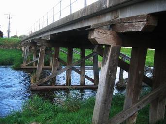 Keywords: bridge wood wooden bridge frame scaffold pillar rods bach water construction
