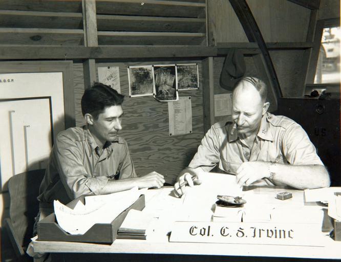 Keywords: brigadier general clarence s. s bill irvine special collection photo people Catalog #: 09_01872 Title: Brigadier General Clarence S. ""Bill"" Irvine Special Collection Photo Additional Information: Clarence S. Irvine (on right) seated at his desk smoking a cigar with unidentified man, Brigadier General Clarence Irvine enjoyed a long distinguished military career, mainly involving engineering. He served with the XXI Bomber Command (B-29's) during WWII and continued to serve throughout the 1950s and 1960s. Tags: Brigadier General Clarence S. ""Bill"" Irvine Special Collection Photo Repository: San Diego Air and Space Museum Archive Catalog #: 09_01872 Title: Brigadier General Clarence S. ""Bill"" Irvine Special Collection Photo Additional Information: Clarence S. Irvine (on right) seated at his desk smoking a cigar with unidentified man, Brigadier General Clarence Irvine enjoyed a long distinguished military career, mainly involving engineering. He served with the XXI Bomber Command (B-29's) during WWII and continued to serve throughout the 1950s and 1960s. Tags: Brigadier General Clarence S. ""Bill"" Irvine Special Collection Photo Repository: San Diego Air and Space Museum Archive |