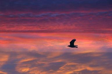 Keywords: bird flying feathered sunset red sky clouds animal wildlife nature