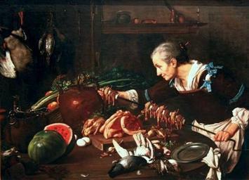 | Keywords: Briglia Old cook with a spit.jpg Artwork Creator Giovanni Francesco Briglia secondhalf other date century 18 oil canvas Institution National Museum Warsaw accession number object history credit line http //www rp pl/galeria/0 3 647626 html bigImage www rp pl PD-old-100 DEFAULTSORT 1750 after; Old cook with a spit Giovanni Francesco Briglia Italian paintings in the National Museum in Warsaw Still life paintings in the National Museum in Warsaw 18th-century still life paintings in Poland People in kitchens in art Paintings of old women Roast poultry Rotisserie Paintings of kitchens Female cooks in art 1751-1800 paintings |