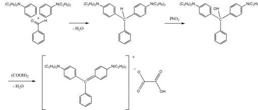 Keywords: Brilliant green synthesis 1b.png Brilliant green's synthesis own Vadim Akopyan 2011-01-13 Cc-zero Triarylmethane dyes Chemical syntheses